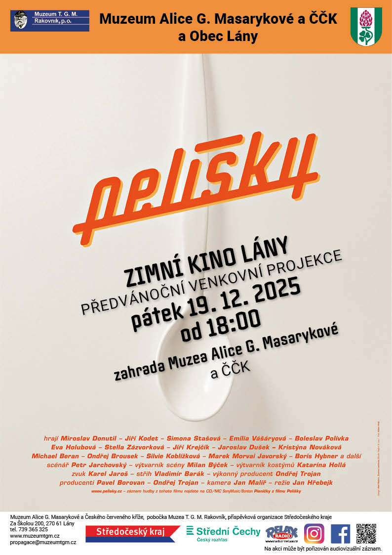 Muzeum Alice G. Masarykové a Obec Lány zvou na venkovní promítání filmu Pelíšky, které proběhne v pátek 19. prosince 2025 od 18 hodin na zahradě muzea, ul. Za Školou 200.
