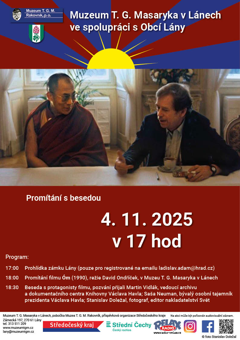 18:00 Promítání filmu Óm (1990), režie David Ondříček, v Muzeu T. G. Masaryka v Lánech