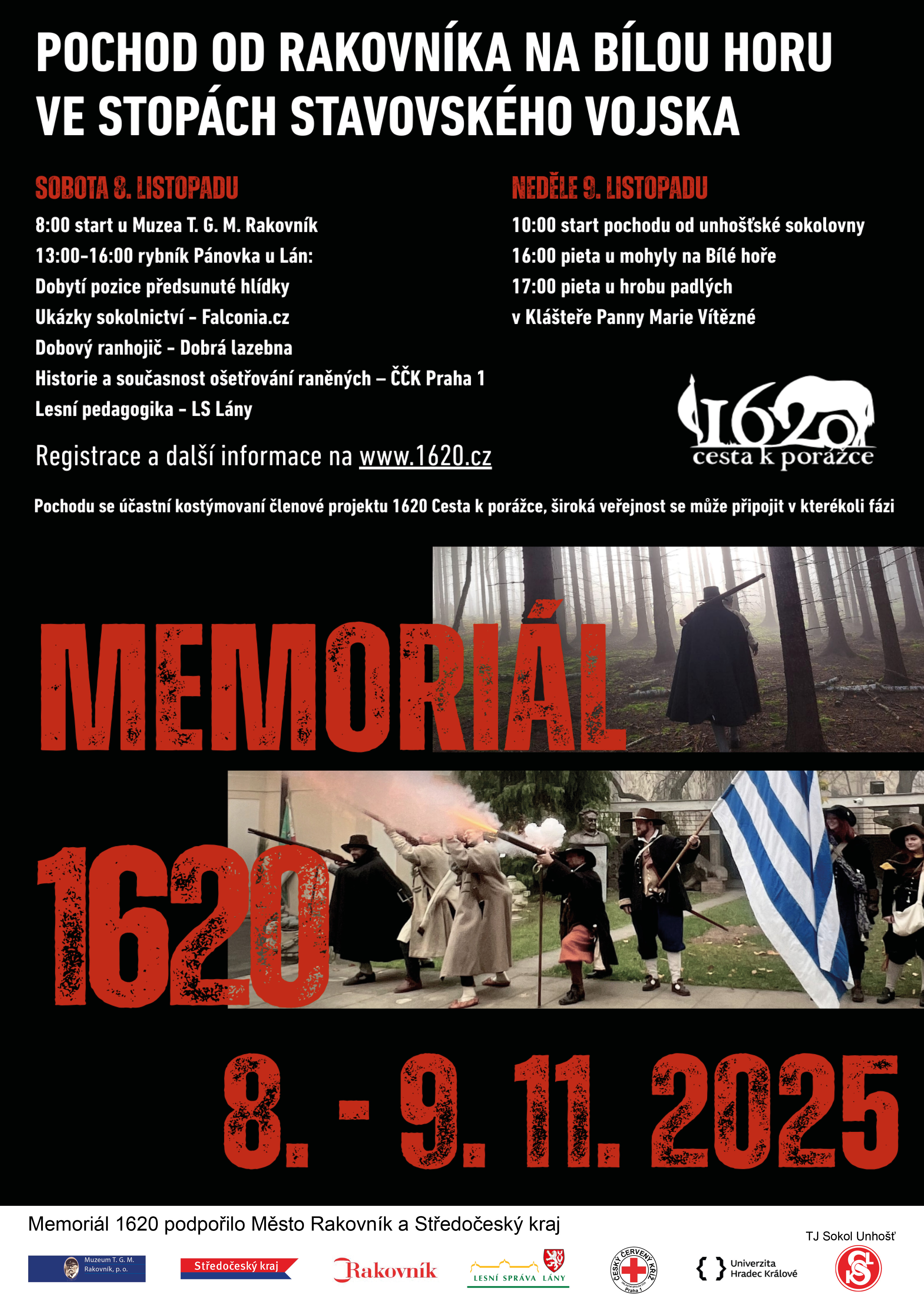 Připojte se 8. a 9. listopadu 2025 ke kostýmovanému pochodu od Rakovníka na Bílou horu a ověřte si, jak moc mohla tato cesta ovlivnit bojeschopnost stavovského vojska. Boje u Rakovníka a tato úmorná cesta odtud na Bílou horu na podzim 1620 vedly přímo k dějinnému zlomu na Bílé hoře. Ve dnech 27. října až 6. listopadu 1620 se město Rakovník stalo svědkem několikadenních vojenských střetů armády českých stavů s císařsko-ligistickými vojsky postupujícími od Plzně na Prahu. Během těchto 10 dní nedošlo u Rakovníka k žádné velkolepé bitvě, ale k opakovaným šarvátkám, které měly katolické armády znervóznět, vyhladovět a vyčerpat. Velitelům i vojákům na obou stranách došla nakonec trpělivost se špatným počasím, bloudícím oddílem s proviantem a nevyplaceným žoldem. Od Rakovníka se 5. listopadu 1620 vydaly obě armády na vyčerpávající cestu ku Praze, připomínající zoufalou honičku, která stavovské žoldnéře připravila o zbytky vůle k boji. Na Bílé hoře pak bylo během několika málo odpoledních hodin v neděli 8. listopadu 1620 rozhodnuto o konci českého stavovského povstání a o dalším osudu českých zemí. Tyto události se staly jedním ze zlomových okamžiků dlouhotrvajícího celoevropského válečného konfliktu – třicetileté války.