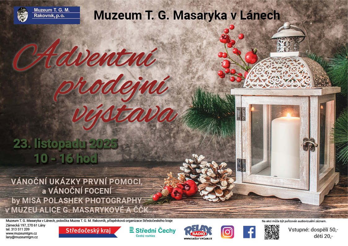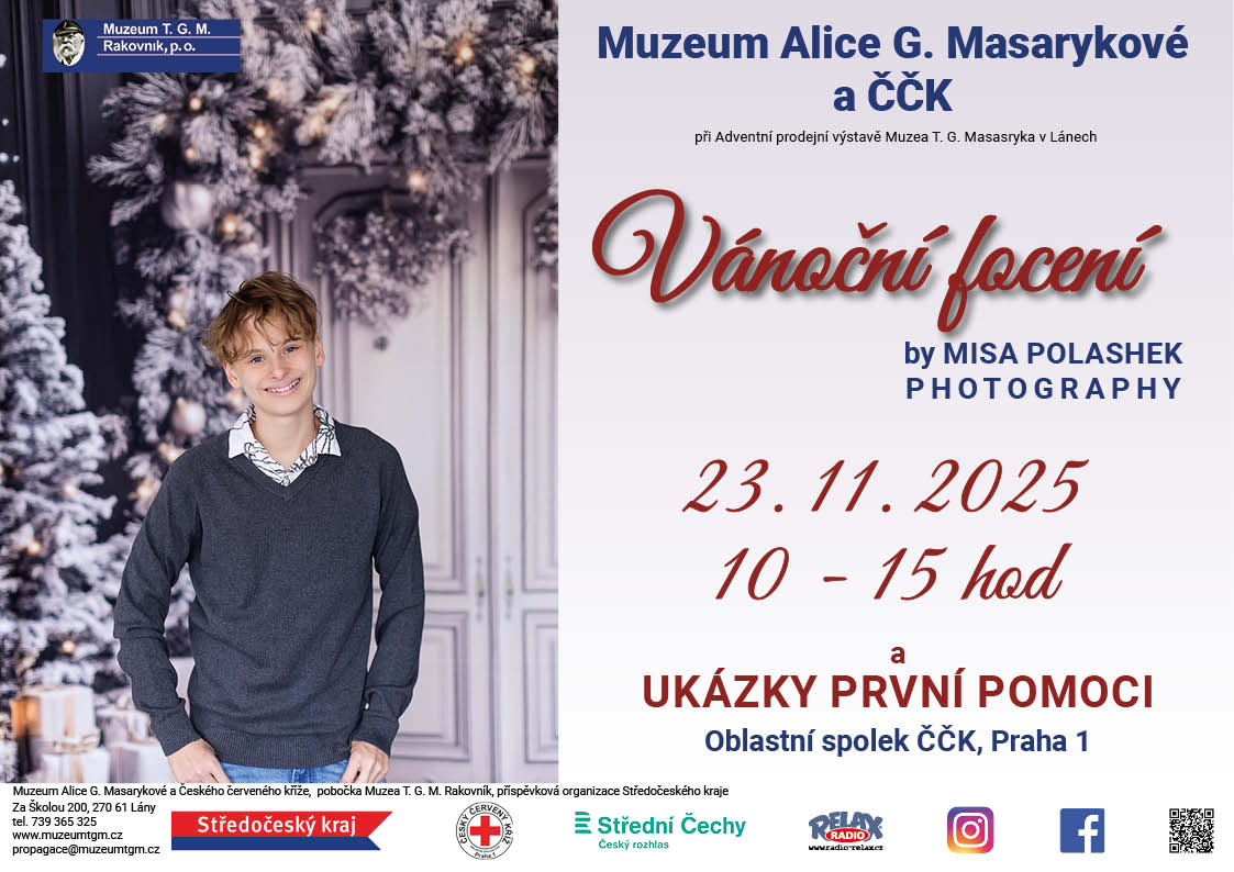 Ani tentokrát v nabídce nebudou chybět adventní věnce, dekorace, svíčky, svícny, vánoční cukroví a další zajímavé zboží. V MUZEU ALICE G. MASARYKOVÉ A ČČK bude v neděli 23. listopadu 2025 od 10 do 15 hodin probíhat VÁNOČNÍ FOCENÍ by Misa Polashek Photography, (Cena 300,-kc - tisk 2x + digi foto v ceně) a vánoční ukázky první pomoci.